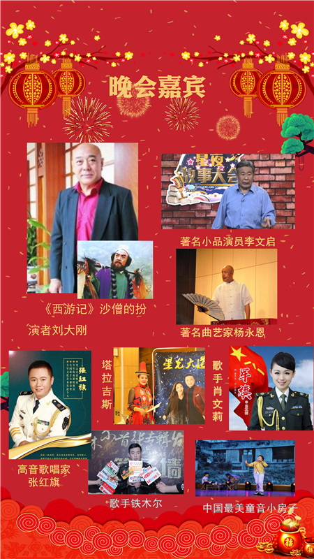 【17:00—20:00】:晚宴、节目欣赏。(拟邀请《西游记》沙僧的扮演者刘大刚、著名小品演员、表演艺术家李文启、单田芳关门弟子曲艺家杨永恩、星光大道评委塔拉吉斯、蒙古歌手铁木尔、青年歌唱演员肖文莉、歌手小腾格尔、星光大道小房子等。)