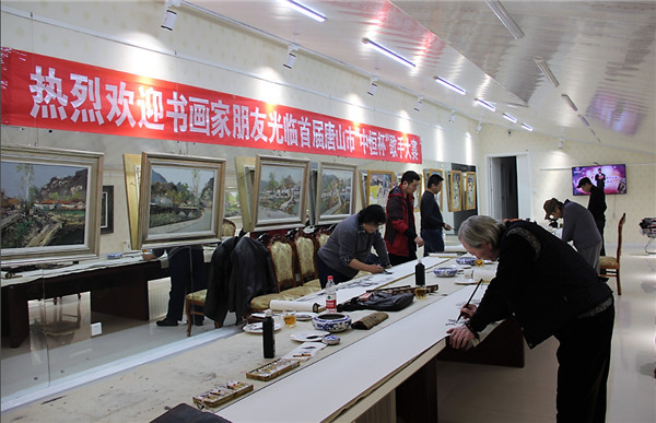 比赛现场,唐山多位著名画家在唐山中恒文化画室内挥毫泼墨,为本届“中恒杯”歌手大赛助力。