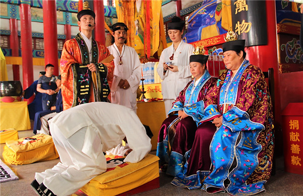 全真龙门派第二十代弟子何明贤道长在玉清观举行收徒仪式