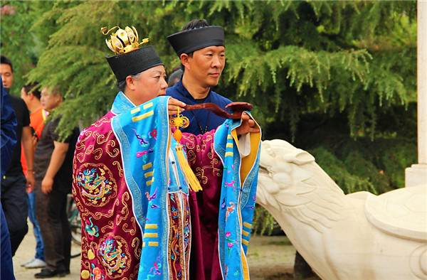 本次收徒仪式,是何明贤道长在众多申请者中,经过慎重选拔,确定13名优秀者收授为徒。他们分别是苗俊营,道名至真;肖春亮,道名至理;张燕,道名至冉;焦延滨,道名至通;田树森,道名至远;陈济州,道名至一;彭继州,道名至忠;宋贵福,道名至富;李野力,道名至武;李彦辉,道名至福;王金勇,道名至玄;王蕾,道名至灵;赵芳,道名至娇。他们怀着一颗对道教文化孜孜以求的虔诚之心,对何明贤道长的感恩之心,在这个可喜可贺的日子里,经过收徒仪式的洗礼,终于如愿以偿,正式成为何明贤道长的弟子。