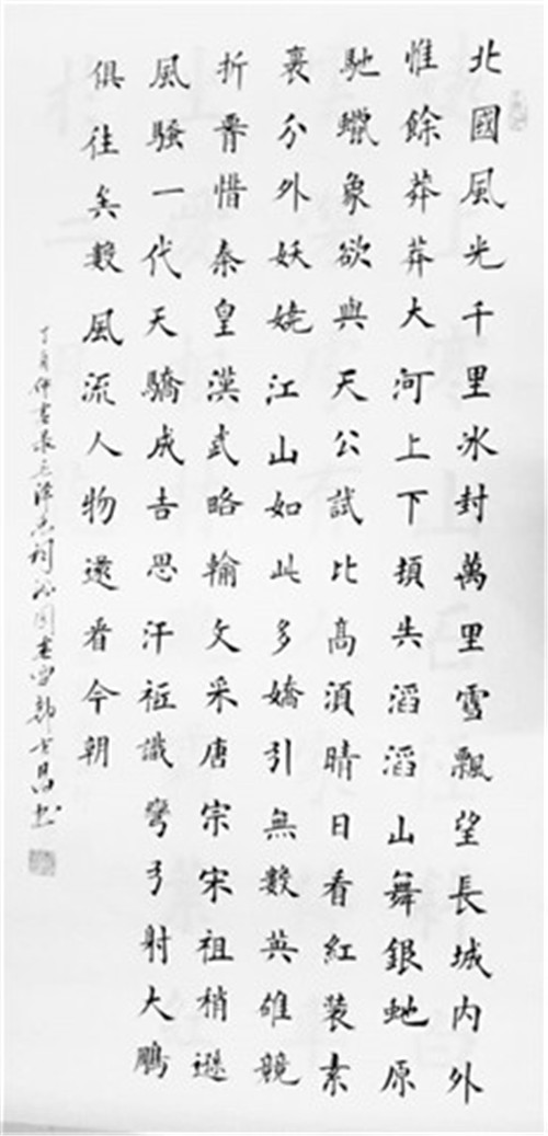 郭世昌,1947年, 别号,夕阳山人,现居廊坊,原藉甘肃通渭人,现为中国书画艺术发展研究会理事。自幼喜爱医学和书画,毕业后投入卫生事业几十年,利用工作闲暇之余习帖不停,书法创作。其书法特点,常以雄强、洒脱、俊逸见长,气势恢宏间不失隽逸娟秀。他以意写书,张弛有序,字的结体和章法富有创造性。同时还十分注重书法内容与形式的和谐统一,以及书法创作中内在精神情趣的表达——写榜书力求厚重,写警句力求有力,写诗歌力求从容,写名言力求雄浑,写对联力求呼应,写文论力求清明……字字表现出“气韵生动”。所谓的“气韵生动”,按元•杨维桢的说法是“传神者,气韵生动也”,就是“以形传神”,如此才能“夺造化之机”。 他的刻苦用功是人所共知的。虽年过花甲,却身体康健,精神矍铄,加之对书法艺术的酷爱,每每写起字来,废寝忘食、不知疲倦,两天写上一刀纸的事也是时有发生。如此勤奋,让人敬佩不已,也让好多年轻人自愧不如。 直至2016年开始参加书画比赛,曾获得奖项有:2016年东方美全国诗联银奖;纪念中韩艺术交流展金奖;2016羲之杯全国书画展优秀奖;2016端午知情共筑中国梦全国书画展一等奖;少林寺建寺1520周年收藏证;首届中粮长城杯荣誉证。
