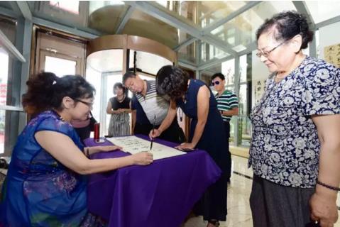 张家口市女书法家协会自成立以来,始终发扬兰亭精神,坚持“建和谐协会,创精品工程,育书法人才,促文化繁荣”的理念,抓基础,创品牌,打造精品,提升发展内涵,得到社会各界的广泛关注和好评。黄羊山文化园人杰地灵,自然环境优美,文化氛围浓郁,与书法艺术相得益彰,为党的十九大的召开献上一份厚礼。