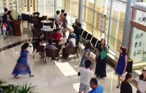 8月1日,张家口市女书法家协会与黄羊山文化园共同举办的“喜迎十九大,墨韵黄羊山”女书法家作品展在黄羊山文化园隆重开幕,宣化区委宣传部副部长韩德祥参加了此次展会并宣布了展会的开幕,参加此次开幕式的有张家口市书法家协会及各区县协会的会长、会员,以及黄羊山文化园的相关负责人等共计40余人,他们饶有兴趣的参观作品并纷纷表示此次作品的参展水准之高实属首次。