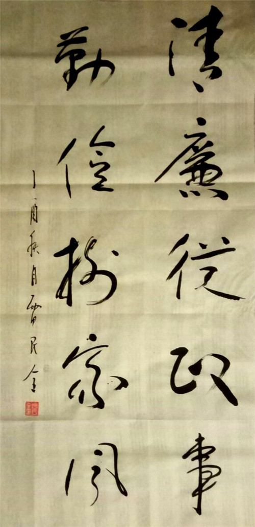 雷民全,1964年生,重庆奉节人。现为:中央国家机关书法家协会会员,中国书画艺术收藏网会员,北京市通州区潞河书画艺术研究会秘书长,北京市通州区文联书法家协会理事。自幼临习古人,博众人之长,形成了自己的风格。注重传统,以黄庭坚、孙过庭为师,以草书为主,其书法求流畅、洒脱、奔放,均以毫迈酒脱,点画飞舞间便显现着不凡的气度。笔画交接处自然,笔风老练纯熟,行走刚劲、收笔之处苍劲有力,着力凸现了骨力遒劲的笔风,后又受到沈鹏、李铎、张海等书法艺术家的一致好评。