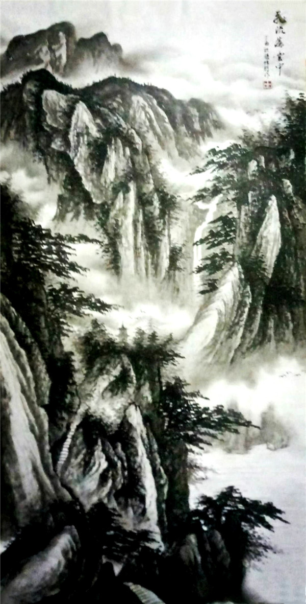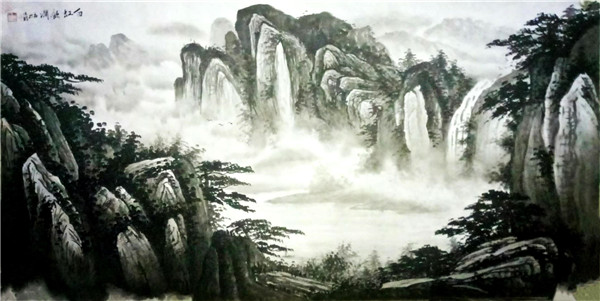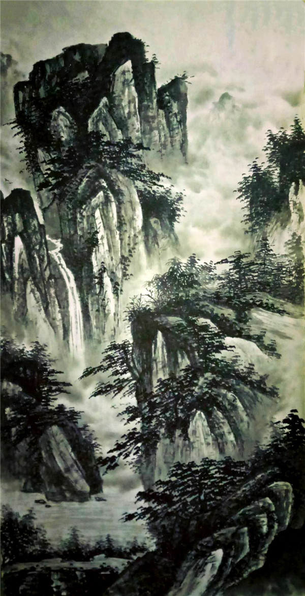 细细品味画家山水画,一个突出的感觉是它的“气韵生动”。它是画面表现出来的“生命的韵律”的视觉,也是作品中各形式要素间有机联系形成的“意气贯通”、“浑然天成”的佳境。呈现出独具的笔墨晕染效果和美不胜收的艺术效果,给人以无限遐想的空间。
