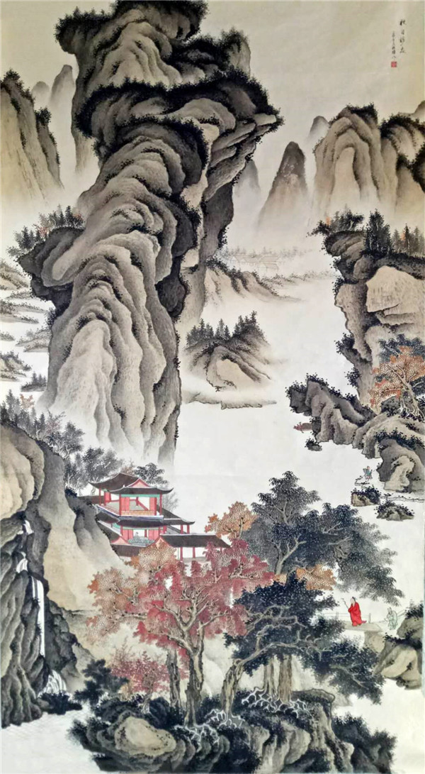 纵观中国传统艺术的发展史,不论是盛唐时青绿山水的辉煌,还是宋代山水的空灵雅致;不论是元代山水的空疏秀朗,还是明清山水的严谨慎密,都突出一个“意境”之美。意境是山水画的灵魂。凡是有很好意境的山水画,都彰显了其不朽的艺术张力和蓬勃的生命力,使人身临其境,感受那或亦真亦幻,或气势磅礴,或蜿蜒逶丽,或曲径通幽的诗情画意。
