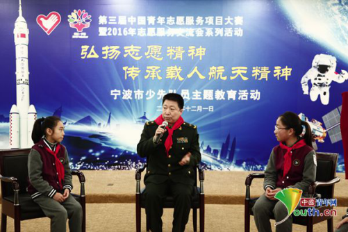 中国青年网宁波12月1日电(记者张思怡白梦帆)载人航天和青年志愿者可谓是中国“最高”和“最美”的名片。在第三届中国青年志愿服务项目大赛暨2016年志愿服务交流会举办之际,这两张靓丽的名片在宁波汇集。