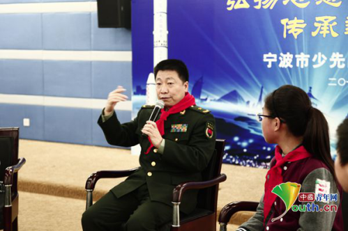 “航天英雄”杨利伟向孩子们讲述自己的航天经历。中国青年网记者张思怡 摄