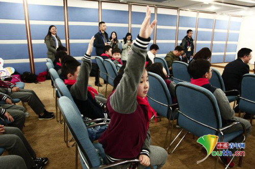活动现场少先队代表们积极向杨利伟提问。中国青年网记者张思怡摄