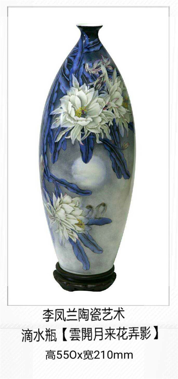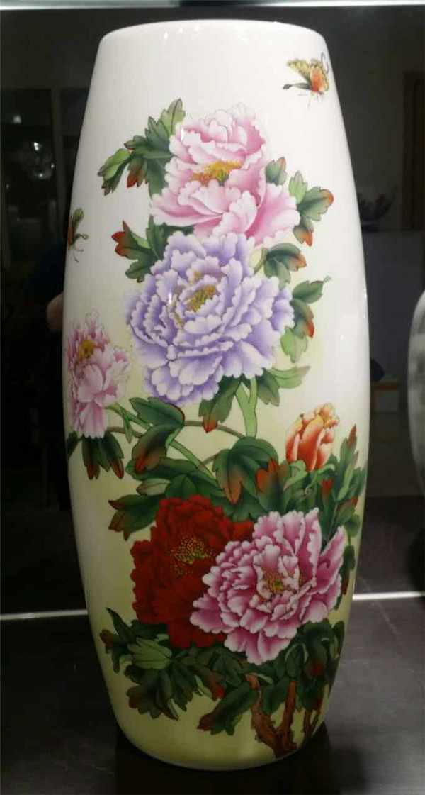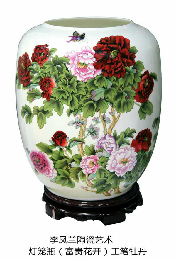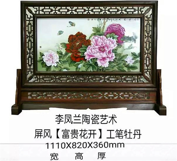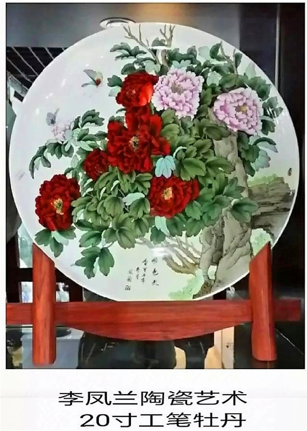 瓷器上作画是画家进行艺术创作的一种新的延伸形式,对画家而言有一定难度,譬如瓷器上使用的颜色与传统中国画使用的色彩不同。李凤兰从事陶瓷工艺美术设计工作40余年,多年来,作为一名女性陶瓷工艺美术画家,潜心主攻釉上手绘工笔牡丹等花鸟画。