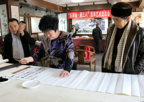 “庆两会 迎三八”书画笔会现场