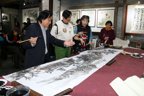 著名画家胡庆国在笔会现场挥毫泼墨
