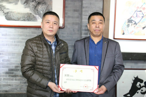 执行院长单玉志为张龙颁发副院长聘书