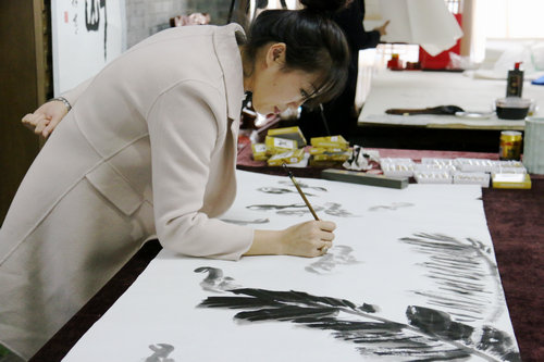 著名画家张文静在笔会现场挥毫泼墨