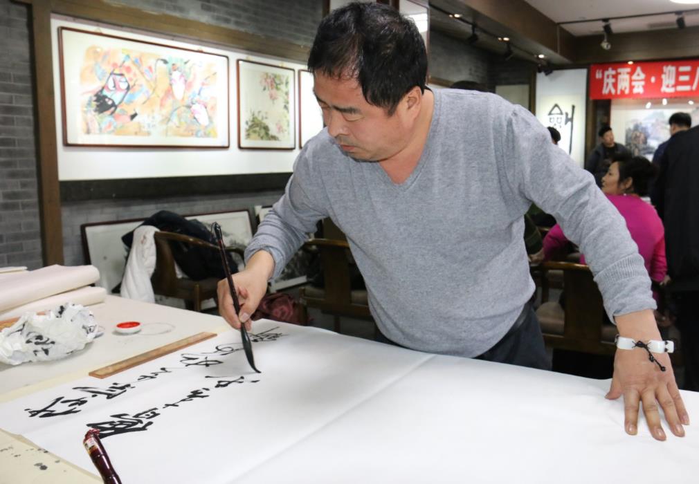 环球文化艺术网(记者:许顺喜 摄影:杨东亮)阳春三月,草长莺飞。在举国上下欢庆全国"两会"胜利召开之时,也是第107个“三八”国际妇女节到来之际。为庆祝两会暨三八妇女节这两大盛事,由北京宣和书画艺术研究院、环球文化艺术网、健康导报、中国周易新闻网联合主办;飞驰环球(北京)文化传播有限公司承办的“庆两会 迎三八”书画名家笔会在北京宣和艺术馆隆重举行。
