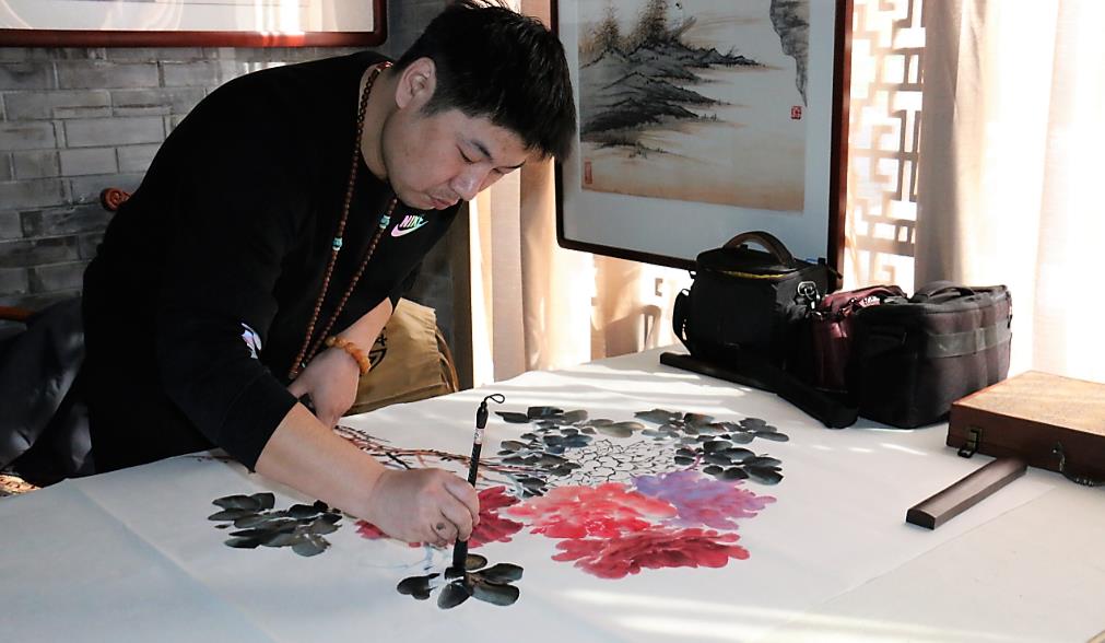 青年画家刘宏亮在现场挥毫泼墨