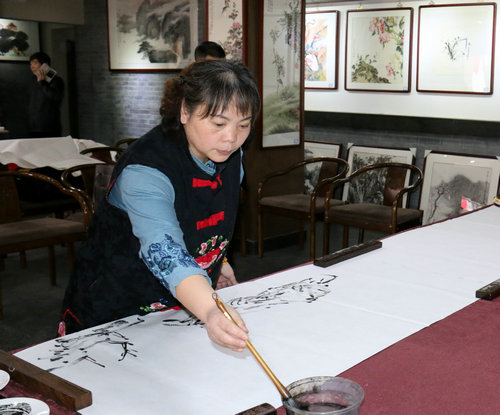 上午十时许,笔会在温馨和谐的气氛中拉开帷幕。参加笔会的书画家以弘扬优秀的传统文化为主题,以喜迎三八国际妇女节,庆祝全国胜利两会为主题,挥毫泼墨,展示出内容丰富、风格多样的书画艺术魅力和内涵。