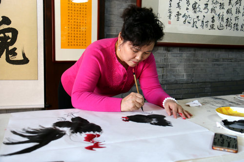 著名画家侯玉兰在笔会现场挥毫泼墨