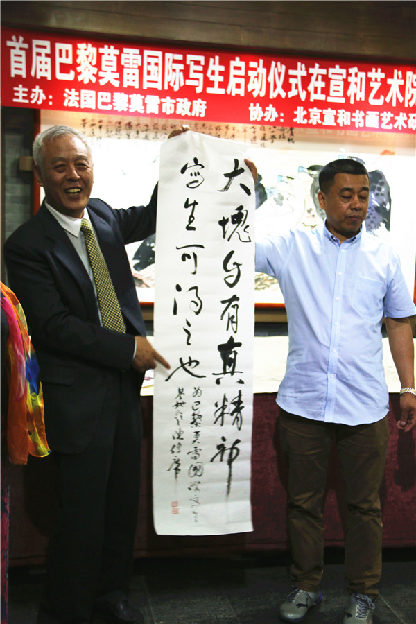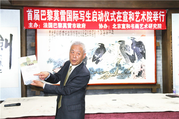 中华志愿者在线(编辑:裴俊)5月22日上午10点,由法国巴黎莫雷市政府、法国美术家协会、法国巴黎莫雷国际写生基地主办,北京宣和书画艺术研究院、飞驰环球(北京)文化传播有限公司协办,首届法国巴黎莫雷国际写生艺术节暨首届巴黎大区国际书画展启动仪式在北京宣和书画艺术院举行。