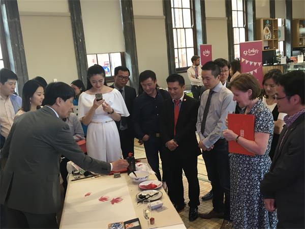 胡乐平教授在画展中为今天远道而来的朋友们表示感谢,同时表示,去年已经在剑桥大学成功举办讲座,今年又有幸在谢菲尔德举办画展,是让中国传统文化在英国传播的有力开端。英国有著名的伟大作家莎士比亚,中国有名垂青史的诗人李白,中英两国文化博大精深。