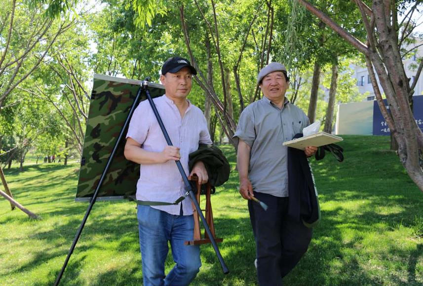 葛棣与全国政协常委、中国美术家协会副主席、北京美协主席、北京画院院长王明明亲切交流并合影留念