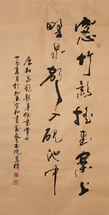 书画同源,在中国书画中,这两门艺术是相通的。中国书画史上,很多大家都是书画兼擅的。我是书画都很喜欢,写写字,画些画,一方面是修身养性,一方面也是互补,各方面的休养都需要。特别是书与画,结合得更近。我是以书入画,以画入书。总是写字,画意感不想,需要通过研习画来增强书写中的画意。通过以书入画,强调画画中的书写感觉。我国古代大家在画画最后的落款都是某某写,很少写某某画。这就是中国文人画的显著特征。就是写的意识在画里面,使画更有看头,更有品味的成分。书法中,没有画的意境,只是单调的线条,很难写出精彩。我是通过书画兼修,尝试达到这两种艺术的结合。