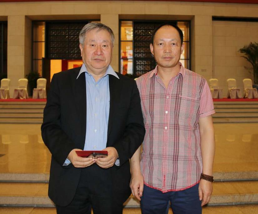 六届全国人大常委、七、八、九,十届全国政协常委、全国总工会原副主席、国家民委原副主任江家福(右一)收藏宣和艺术院院委会主任葛棣禅画作品并合影留念