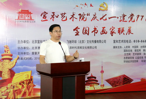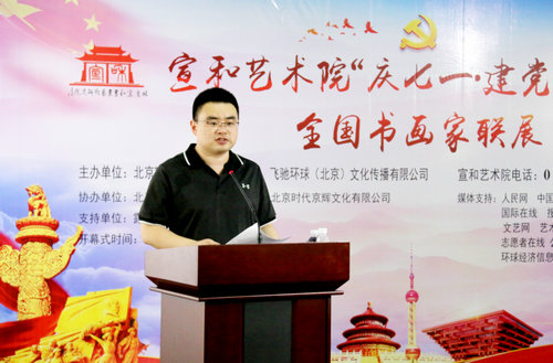 北京宣和书画艺术研究院常务副院长许顺喜主持画展开幕式