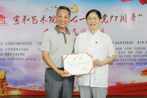 郭玉祥为北京师白艺术研究会会长娄述德颁发名誉院长证书