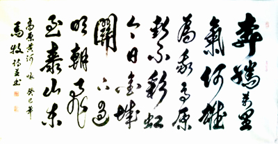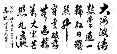 马牧,当代著名"诗人书法家",中华(全国)诗词学会顾问,中国诗书画院院长,中国公益总会书画院常务副院长,国务院国宾礼艺术家。常随国家领导人习近平主席等出访交流。多次做客中央电视台名人访谈节目,2012年应邀访台时曾被台湾媒体报纸大幅报道并评赞为"作品直追唐宋先贤"。