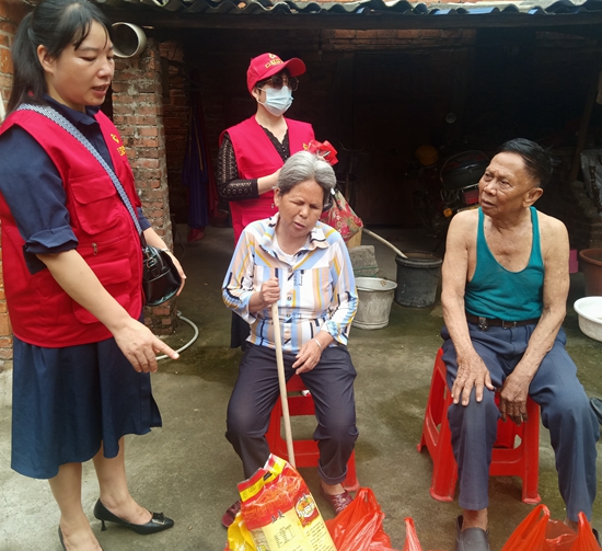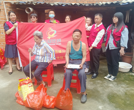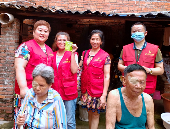 广西钦州市钦北区工作站站长胡建、办公室主任汤爱武、公益服务部部长冯爱英,组织大家去钦州市钦南区高岭社区看望高龄残疾老人:叶营典,男,1936年2月3日岀生,年老无业;凌桂珍,女,1956年5月10日出生,双眼视力残疾。