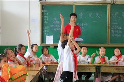 郑州站杜宏娟报道:为加强青少年党史学习教育,从小学党史、感党恩、跟党走,7月17日,河南牧业经济学院蒲公英支教团在焦作市武陟县大虹桥乡大虹桥小学开展“从小学党史,永远跟党走”党史学习教育主题系列活动,蒲公英支教团负责老师李姗姗、17名志愿者及学校近130名学生共同参加,用实际行动献礼中国共产党成立一百周年华诞。
