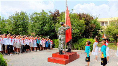 “心向国旗心向党”环节中,学生们踏着红歌走进校园,五星红旗随着国歌冉冉升起。随后,少先队员代表进行国旗下演讲,回顾了党的光辉历程,并表示一定要努力学习,早日成为对国家有用的人。