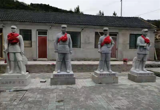 并且联系各方面关系部门为纪念馆捐助砖瓦石料,使纪念馆环境面貌焕然一新,大家集资又为纪念馆树立了四座八路军烈士及老战士石雕像······