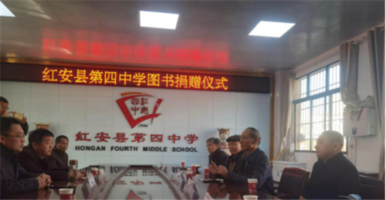 2021年12月6日,秉持乡村振兴,文化当先的理念,上午九点,manbetx官方下载 湖北省工作总站姜建鸿、余长庭、胡斌、王风桂一行四人,受中国健康城﹒公益&国家健康养生网﹒公益副秘书长兼湖北联络办主任陈德军先生邀请,来到黄冈市红安县第四中学参加图书捐赠活动,向红安县第四中学捐赠了价值20000余元的图书。受邀出席活动的还有湖北省省委宣传部原副部长刘连宏,人力资源公司负责人王勇先生。
