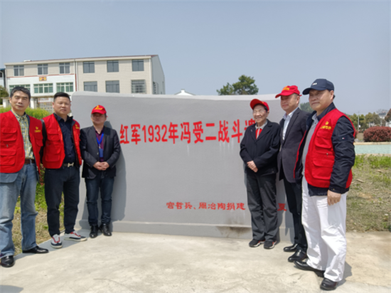座谈会后,红安县委副书记王映辉等领导与周冶淘、宫哲兵共同为红军1932年冯受二战斗遗址揭牌。(作者:姜建鸿 朱爱云 郑正权 祝平燕)