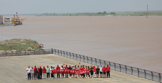 我们早晨四点半发车,一路高歌,歌唱党歌唱祖国。八点左右到达,我们首先在人群多的地方发放宣传单,共发放一百多张宣传单。我们站在黄河边,用不同的形式歌颂母亲河。