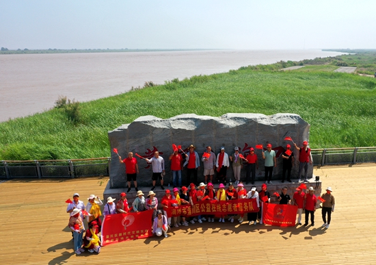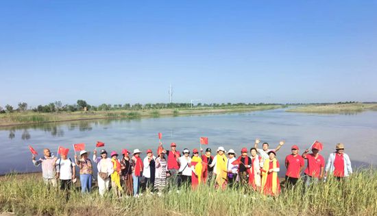 淄博站的志愿者驱车几百公里来到东营黄河入海口,宣传节约用水,保护母亲河,夏季防溺水等教育。