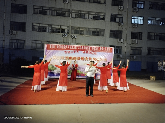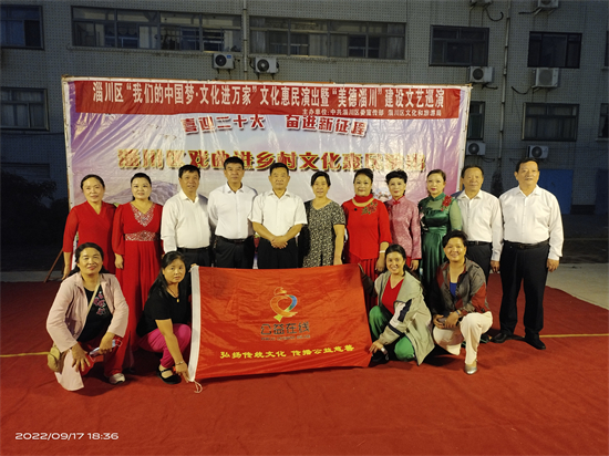 淄川般阳文化艺术团“喜迎二十大 奋进新征程”,惠民演出第十五站---走进罗村镇河东村,于2022年9月17日晚在河东村北文化广场落下帷幕。自2022年8月份来,般阳文化艺术团在殷若杰团长的带领下,奋战八个镇办、为二十一个村居社区提供高品质的文艺演出。每台节目由刘慧玲常务副团长、刘红副团长、赵文秀精心策划,王爱娟、周振海、李清波、刘珂等副团长现场组织并倾情演出。演出节目涵盖戏曲、歌舞、语言等综艺类,时长140分钟左右、演职人员80人左右。目前已完成十五场的演出,每到一处都受到了群众的热烈欢迎。在偏远山区,群众自发打扫场地卫生、自发提供茶水、自发帮助装卸台,表达了对演出的渴求,散场时群众拉着演员的手依依不舍,连问何时再来。“一村一年一场戏”惠民演出是区委区政府深入贯彻落实习近平新时代中国特色社会主义思想和十九大精神,以人民为中心的文艺工作导向落到实处的具体举措。演出按照“政府购买、院团演出、群众受益”的总体思路,以多种演出主体和多种演艺形式有机结合,群众需求和演艺资源精准对接,更好的满足了城乡群众对高品质文化生活的需求。