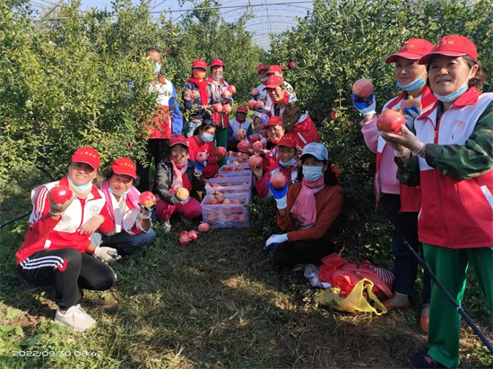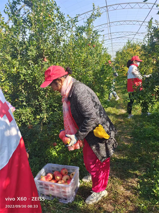 9月30日早上8点,志愿者有的骑着电动车,有的王文晓站长开车拉着行程5公里赶到黛青山开始采摘,虽然是秋天,但在石榴园里气温还是很高,里面少不了蚊子叮咬,但大家看到满园又红又大的石榴,看到这丰收的景色没有一个叫苦叫累的,高兴的一边采摘一边歌唱,大家有的采摘有的往外搬运,从八点忙到中午12点,张总激动的要给志愿者工资又要给志愿者石榴,但大家什么也没有要,偷偷的走了。