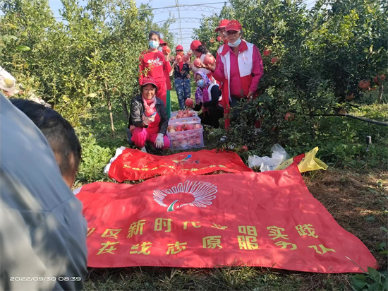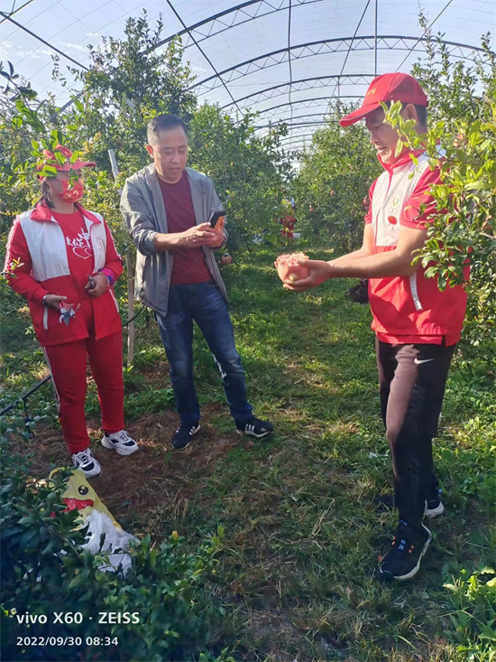 淄博站站长王文晓接到黛青山事业集团有限公司张总电话,问能不能9月30日帮忙采摘石榴,站长王文晓没有丝毫犹豫回答说“行”。紧急下通知,有时间的志愿者9月30日参加助农活动。